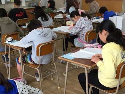 全国学力・学習状況調査を行いました。実施対象は6年生で、国語、算数、理科と児童質問紙(学習や生活の調査)で行いました。国語と算数は、A、Bに分かれていますから、かなりの量になり午前中は全時間、調査となりました。最後まであきらめないを合言葉に奮闘していました。
