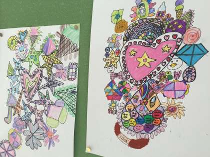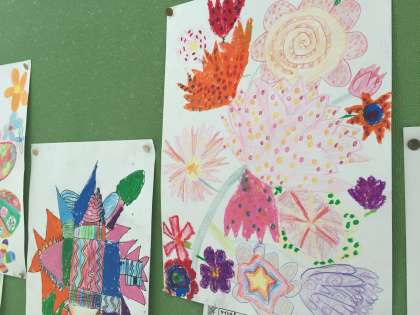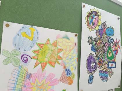 3年生の描いた絵が掲示板にはられています。一人ひとりの心の中にある豊かな世界があふれているように思いました。