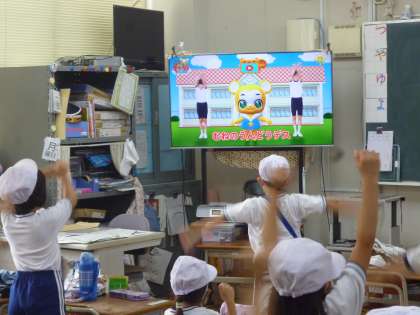 1年生はトライアングルやタンバリンなどの打楽器の演奏をしました。運動発表会に向けてラジオ体操を覚えていきました。