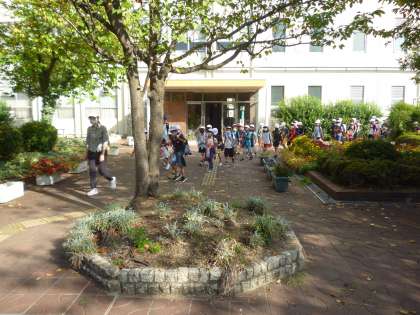 秋晴れのいいお天気に恵まれ、1・2年生が全員、秋の遠足に出発しました。校長先生のお話や担任の先生のお話をしっかり聞いて、みんな素敵な笑顔で天王寺動物園に向かいました。楽しい思い出がたくさんできますように。