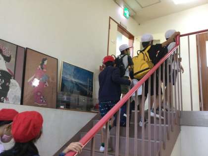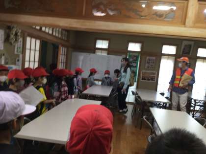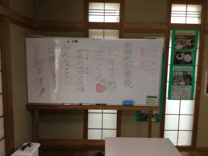 地域の「いこいの家」では、いつもお世話になっている地域の方が案内してくださいました。子どもたちへのメッセージが書かれたホワイトボードを喜んでみていました。館内は2階もあり、とても広く感じていました。