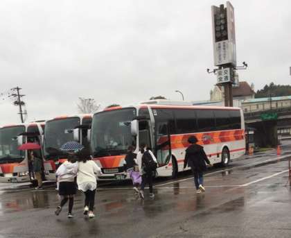 乗り物よいをした児童もドライブインで回復、トイレをすませて、バスは再び出発しました。