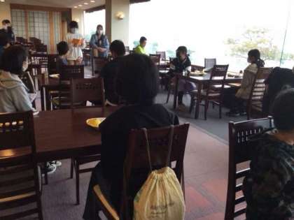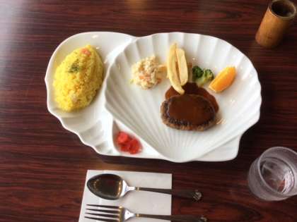 海女さんのショーの後は、昼食です。大きな貝の形の器にハンバーグエビピラフなど子ども達の好きなものばかりです。美味しそうにぺろっといただきました。