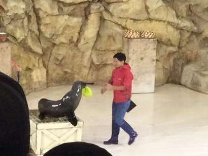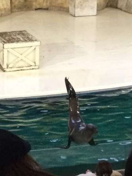 アシカショーを見ました。フリスビーやボールを上手にキャッチできました。