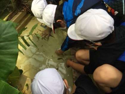 そのあと、また体験コーナーに行きDr.fishのの池に手を突っ込んでいました。お魚に角質を食べられて、手がツルツルになったよ。と教えてくれました。