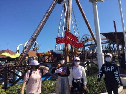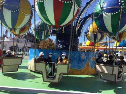 「ピレネーは、1時間待ちだ〜」と言いながら、次に乗れる乗り物を探して楽しんでいます。