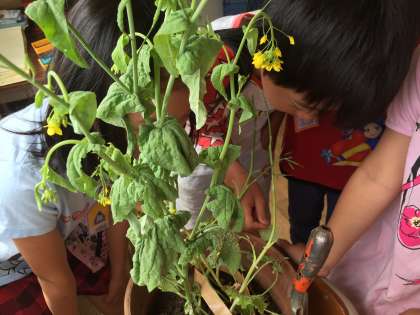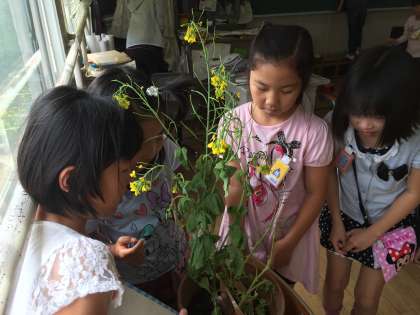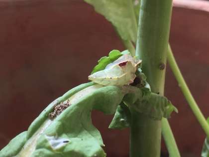 3年生の教室には、チョウの幼虫がいます。それが、さなぎになっていました。子どもたちは毎日、しっかりと観察しています。