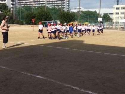 2年生は、運動場で玉入れの並び方や退場の仕方を、上手に練習していました。1年生の良いお手本になるようがんばっていました。