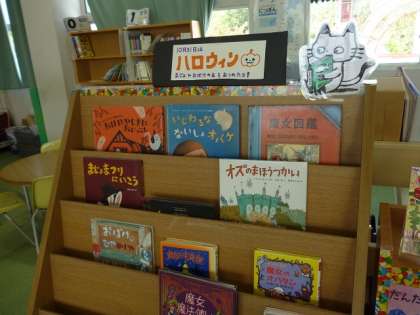 本校図書館には毎週金曜日、図書館補助員の方が図書室で子どもたちを迎えてくれます。10月は部屋をハロウィーンの飾りで飾ってくださったり、ハロウィンに読んだら良い本をピックアップして読みやすく書架にならべてくださいました。素敵な読書環境の中たくさんの本に出会ってほしいです。