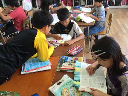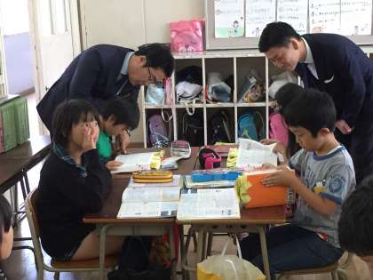 中部大学の深谷圭助先生が辞書引き学習の視察に来られました。先生には、本校の辞書引き学習をサポートしていただいております。今日は、5年生が社会科学習の中で国語辞書を活用していました。