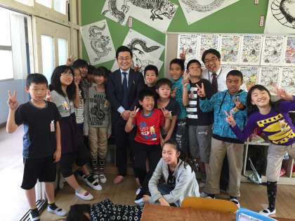 昨年に深谷先生の授業を受けた6年生は、すっかりと顔なじみです。その後の学習の様子を先生に報告していました。
