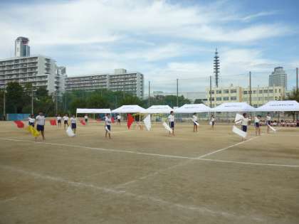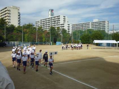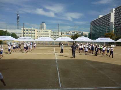 入場行進、応援団の練習(5年生,6年生)