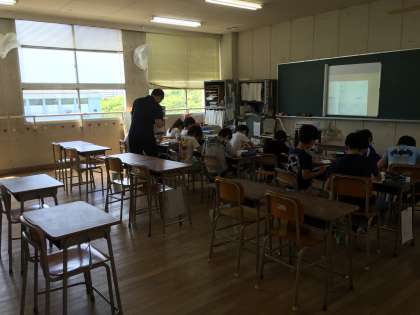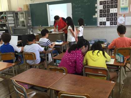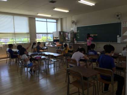 3つの教室で3人の先生による算数学習を進めています。ICT機器を使ったり、支援サポーターによる個別指導を行ったりしています。このようにして、できたという喜びを、どの子にも味わわせる取り組みを進めています。