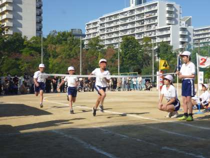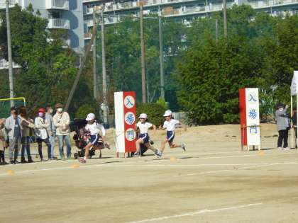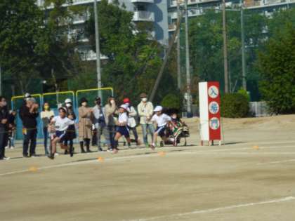 3年生の徒競走です。3年生からトラックを走ります。カーブを曲がる時に苦労しましたが、みんな力走です。