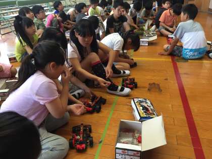 4年生は電池で走る車を作ろうとしていました。基礎的な回路の学習です。試行錯誤しながら、どの子の車も走ることでしょう。