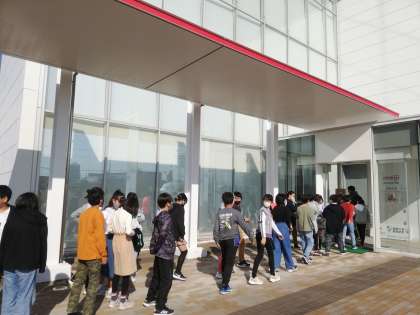 晴天に恵まれ、5年生の社会見学が始まりました。道路はすいており、予定通りに明治なるほどファクトリーに着きました。