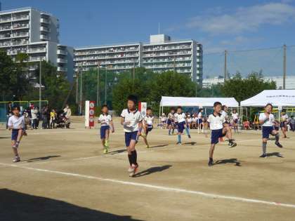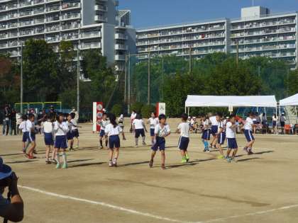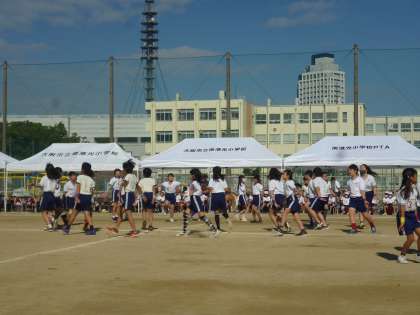 ここから団体演技(ダンス)が始まりました。最初は3年生・4年生です。「Dynamite!!」の曲に合わせて踊りました。