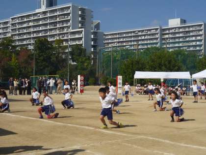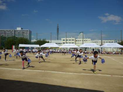 2年生は青色のポンポンを持って踊りました。メリハリをつけて手足を動かしリズムに乗って踊っていきました。
