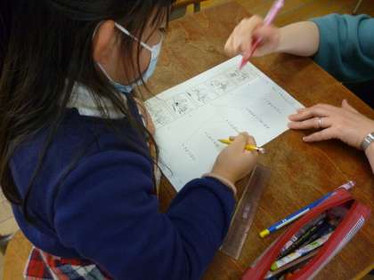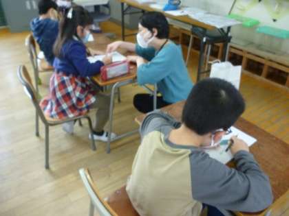 2年生と3年生に、2学期に中国や台湾から転入してきた児童がいます。日本語を勉強するための特別学習が今日から始まりました。今日は、「こんにちは」「こんばんは」など、あいさつをしっかりと学習していました。日本語は難しいですが、はやく書いたり読んだりできるように頑張っています。