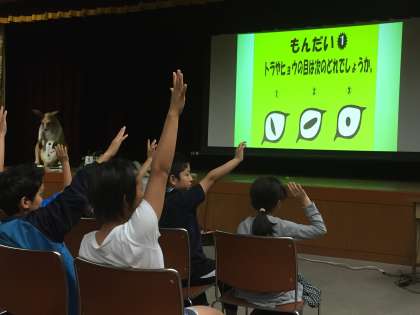 指導員さんから、楽しくて、わかりやすい動物のひみつを聞かせていただきました。具体物を見せていただいて、おもしろかったです。