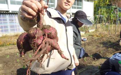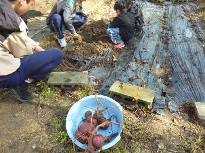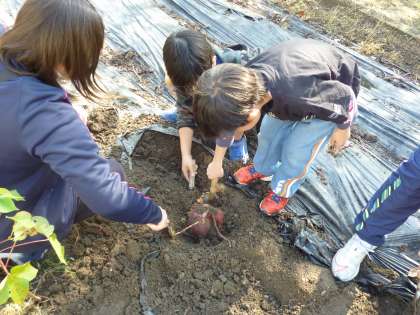 秋も深まり収穫の秋になりました。今日はひまわり学級で芋ほりをしました。土を掘っていくのに苦労しましたが、写真のように大きな芋を収穫でき、みんなご機嫌です。