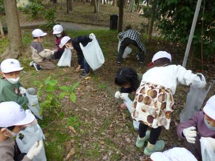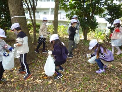 秋もずいぶん深まってきました。1年生と2年生は秋にふさわしい活動を楽しみました。1年生はどんぐり拾いです。さすが南港地域。学校から数分のところでどんぐりがいっぱい採れました。子どもたちは地面とにらめっこしながらどんぐりを拾っていきました。