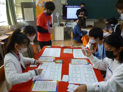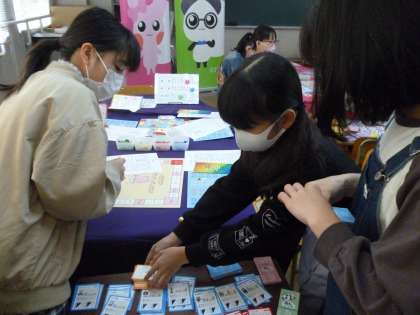6年生は区役所の協力で「未来塾」の学習をしました。ゲームを通して様々な職業について考えたり、自分がどんな価値観で仕事を選んでいくか楽しみながら学習を進めていきました。