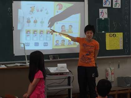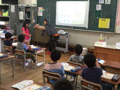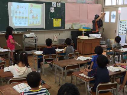1年生の教室では、数の学習で輪投げを通してゼロを学んでいました。実際に具体的な場面をつくることで、子どもたちはとても楽しく、活発に学習していました。
