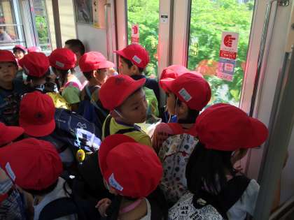 とてもいいお天気になりました。1年生にとっては、はじめての遠足でした。電車の中では、すごくお行儀がよかったです。