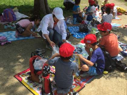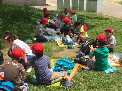 お弁当やおやつも仲良く食べていました。みんなで食べるとおいしいね。