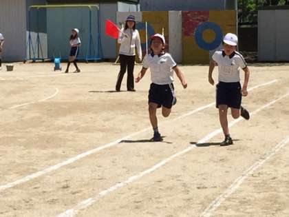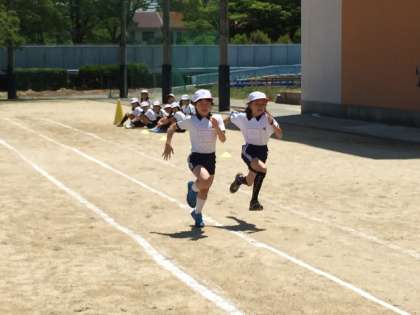50m走にむけて練習してきたロケットダッシュ。今日は、その成果を出し切る日です。
