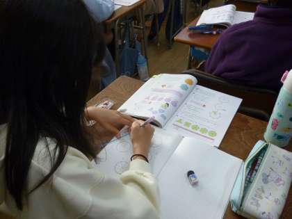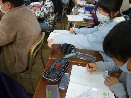 5年生は算数で多角形(5角形や6角形など)を書く学習をしました。円を書き、中心からの角度を計算し、分度器を使って書いていきました。
