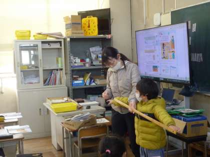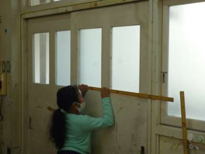 2年生は算数で「1m」について学びました。1mのものさしを使って体や教室内の長さを測っていきました。