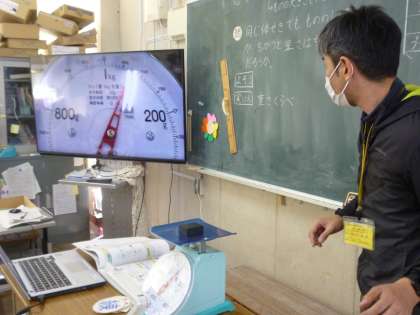 3年生は理科の学習で「物は体積が同じでも重さは種類によって違うか」を予想し、調べました。プラスチックや木、金属など体積が同じ物を種類ごとに重さを予想し、実際に重さを測っていきました。予想が当たると歓声が上がっていました。