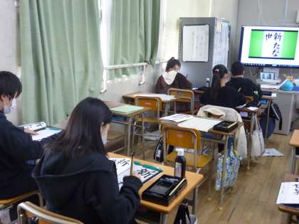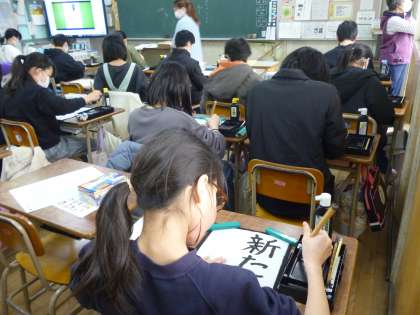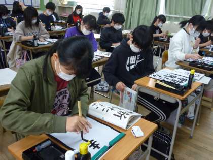 3月に入り、卒業が近くなってきました。今日は小学校で最後の習字の時間です。「新たな世界」の字を書いていきました。1か月後は中学生という世界に入ります。6年生が「新たな世界」で元気に活躍していくことを願っています。