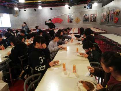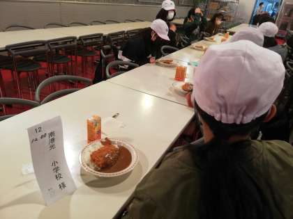 食事はカツカレーとオレンジジュースです。思ったより量が多くて満足です。