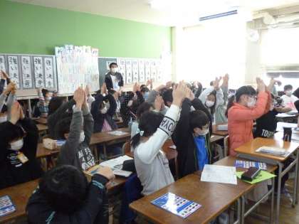 5年生は栃木県の日産自動車工場を見学しました。「栃木県まで行ったの?」と思われるかもしれませんが、これはオンラインによる社会見学です。社会見学がオンラインでできるのは時代の変化を表していますね。子どもたちは画面を見ながら工場を見学して自動車の作成工程を学ぶことができました。クイズもあり、手ぶりで解答していく場面など楽しくわかりやすい内容でした。