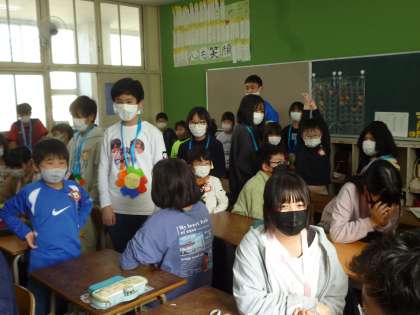 お祝いのメダルを贈りました(1年生、6年生)