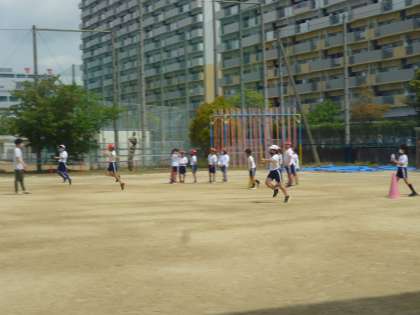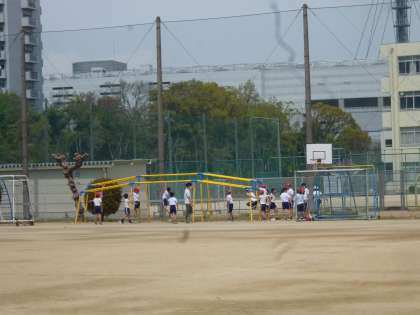 5年生は体育で雲梯をし、続いて走る運動をしました。スキップやジャンプをしながら走るなど工夫しながら走っていきました。