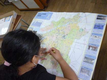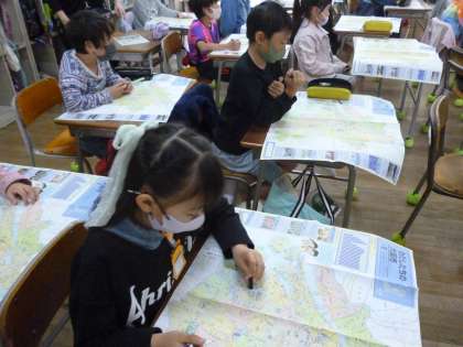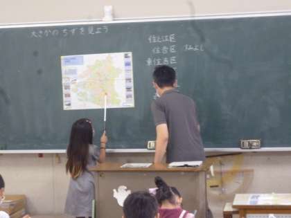 3年生は社会科で大阪市について調べました。今日は「区」の名前や位置について確認していきました。大阪市の地図を開き、「区」を覚えていきました。