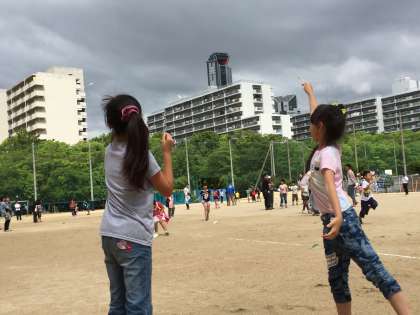 紙飛行機は、風にのって高く遠くまで飛びました。笑顔がはじけて、気分がスカッとしました。