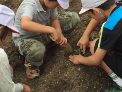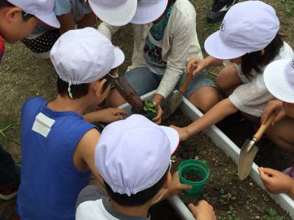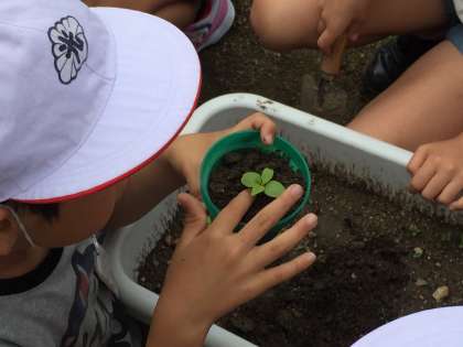 3年生は芽が出たホウセンカやマリーゴールドの植え替えをおこなっていました。ホウセンカを教室で観察するのもいいですね。