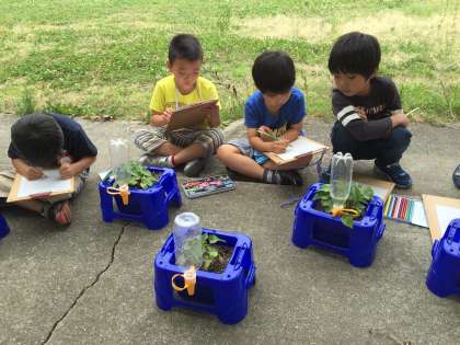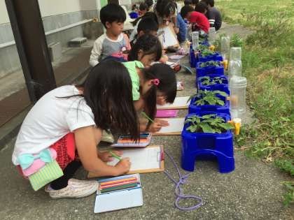 学習に一番必要なものは、集中力です。読む、書く、聞くなどは集中していないと学習になりません。1年生がアサガオの観察記録をとっている様子を見てください。伸びていく子どもをたくさん見つけました。