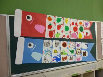 明日から3連休で子どもの日が近づいてきました。校内にはこいのぼりの掲示物があり、子どもたちを明るくしています。