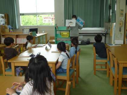 今年度から図書館補助員の先生は図書館司書の方が担当しています。毎週金曜日に図書館におられ、子どもたちの図書の指導を担任と一緒に担っています。今日は子どもたちに図書館のルールを教えていただきました。わかりやすいお話で子どもたちはしっかりと聞いていました。