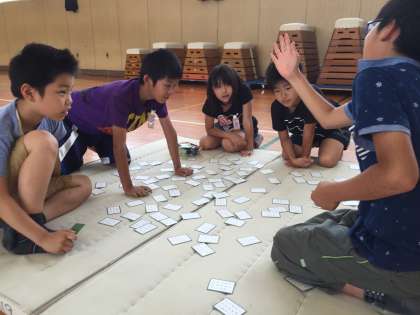 4年生は百人一首をやっています。これくらいの年齢から古典に親しむのは、とてもいいことです。集中力を高めるのにも効果的です。