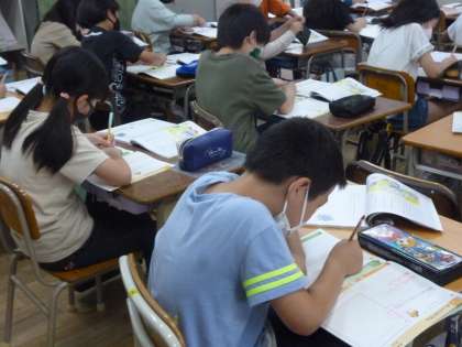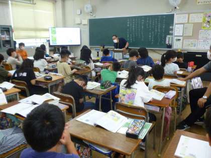 4年生は道徳で、アスファルトの隙間で花を咲かせる草花について考えました。狭い隙間に咲く花を思い浮かべ「花が立派に生きている」「美しい」など、花などの小さな命のがんばりに思いをはせていました。