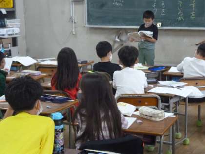 2年生は国語で「風のゆうびん屋さん」の物語を学習してきました。そのまとめとして一人ひとりが音読発表をしています。しっかりした声で発表していました。
