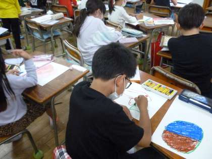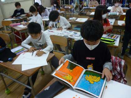 音読、下絵描き(2年生)
