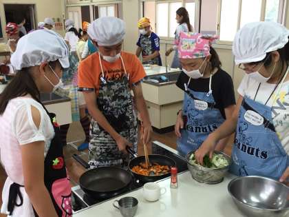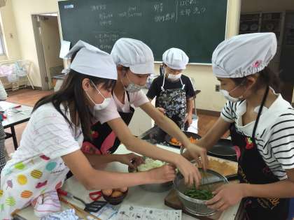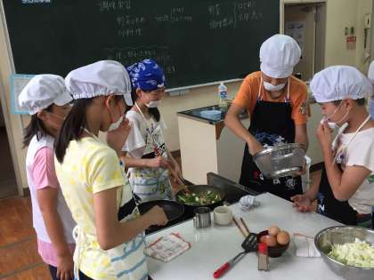 野菜やたまごを火にかけて、てばやく仕上げていました。とってもいい匂いが部屋中に広がっていました。